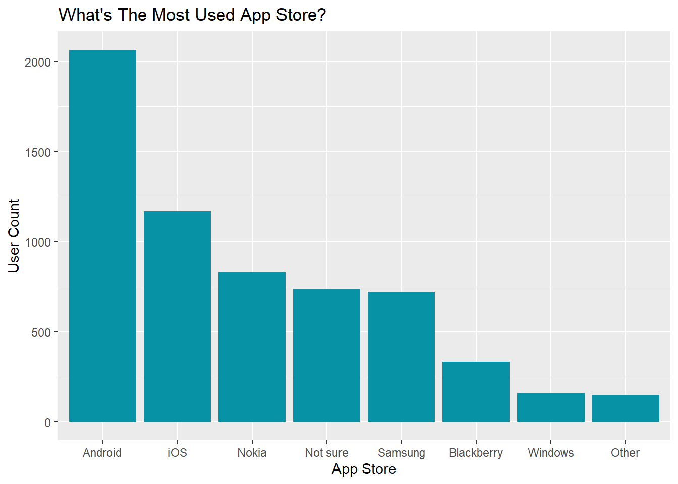 The bar chart displays the number of users for different app store. After filtering out users who don’t have (or use) app store or didn’t answer the question in the questionnaire, we can see that among all respondents, most users use Android app store, followed by Apple iOS, Nokia, Samsung, Blackberry, Windows, and some other app stores. The distribution of user count, in general, follows the global smartphone market share. Interestingly, quite a lot of users answered ‘Not sure’ for the type of app store in this survey, and this might be due to the fact that some mobile devices support a number of operating systems or issue with rebranding (e.g. Android Market has been rebranded as Google Play) as pointed out by Lim et al in their paper “Investigating Country Differences in Mobile App User Behavior and Challenges for Software Engineering”.
